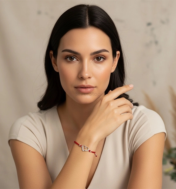 Тази изискана гривна е изработена от червен конец и елемент от висококачествено сребро 925 проба и е украсена с елемент "Сърце", символизиращ любов, страст и емоционална свързаност. В допълнение, сърцето е инкрустирано с малки циркониеви камъни с диаметър 2.00 мм, които придават на бижуто изтънчен блясък и елегантност. Червеният конец е традиционен символ на защита от зли очи и нещастия, носещ късмет и благополучие.