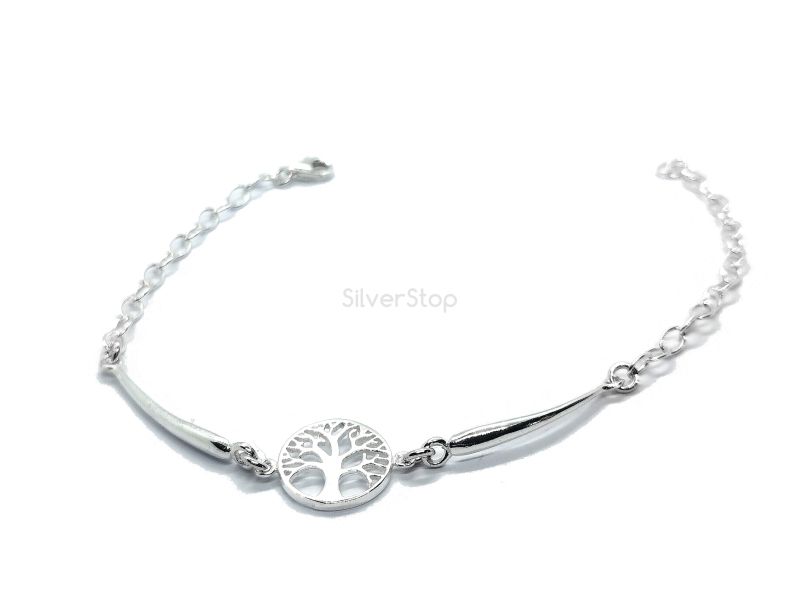 Тази изискана сребърна гривна (проба 925) е вдъхновена от символа на Дървото на живота, което олицетворява свързаност, растеж и сила. Дизайнът включва изобразяване на дърво с разклонени клони и дълбоки корени, обвити в кръг, отразяващи баланс и симетрия.