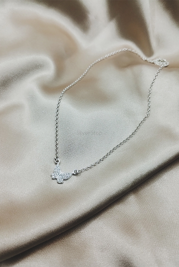 Сребърно колие "Пеперуда" с циркониеви камъни – израз на свобода и елегантност.