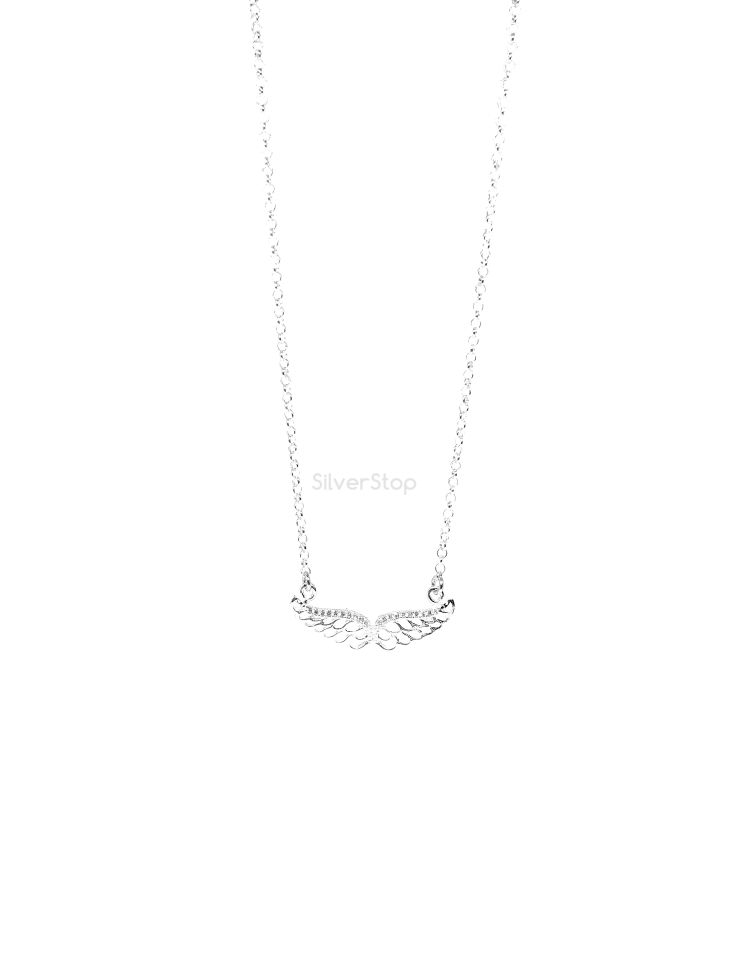 Сребърно Колие "Разперени криле" с камъни цирконий 1.10 мм