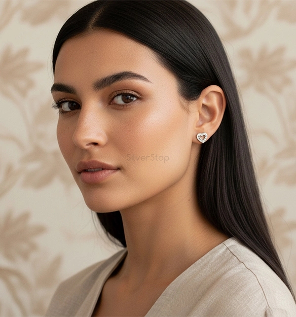 Сребърни обеци “Сърце с Блясък” с циркониеви камъни 1.10 мм – Символ на любов и елегантност.